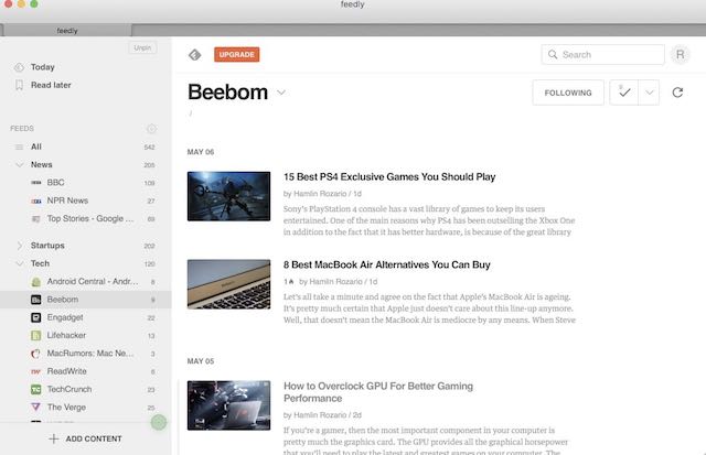 Feedly is a maximum celebrated RSS reader client on iOS then now it has an app on behalf of Mac also. It is the only app approximately this list which is prove on multiple platforms comprising iOS, macOS, and Android. So, if you hold multiple devices then attention to sync your articles across them, Feedly is aimed at you. nonetheless, its Mac client is not as feature rich as other clients on the leader of our list. The overhaul is the majority buggy plus petite. It maintains no integration among slightly other online facilities, so you remain dependent on Feedly to provide you with the desired feeds. moreover, my main annoyance wit h Feedly is not the poverty of features, except the fact that it follows a salaried subscription model.